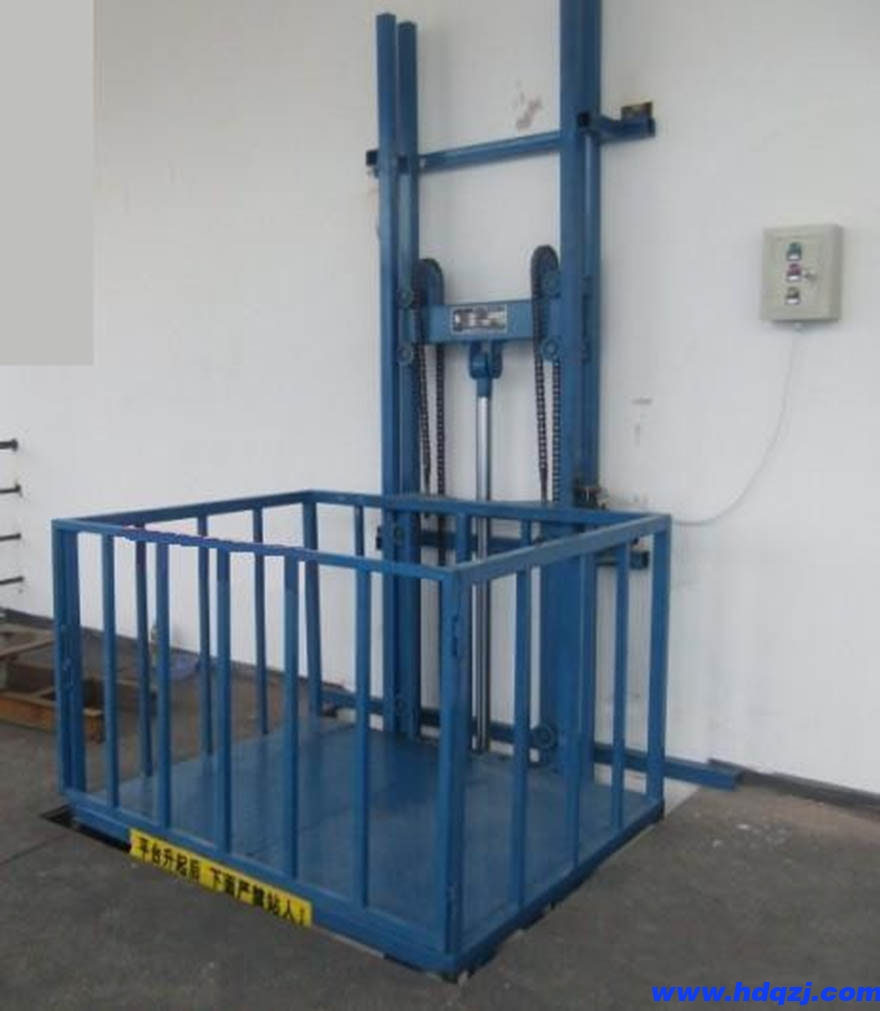 升降貨梯冷卻器所造成的壓力損失一般約為0.01MPa,液壓系統的加熱一般常采用結構簡單、能按需要自動調節z高和z低溫度的電加熱器。加熱器安裝時用法蘭盤水平安裝在油箱側壁上,發熱部分全部浸在油液內。加熱器應安裝在箱內油液流動處,以有利于熱量的交換。由于油液是熱的不良導體,單個加熱器的功率容量不能太大,以免其周圍油液過度受熱后發生變質現象。