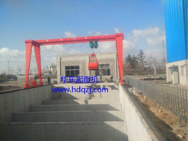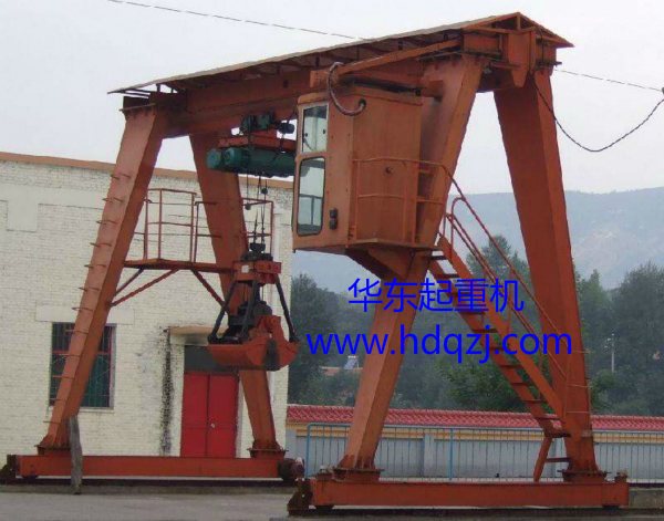 MH型單梁抓斗門式起重機是根據JB/T5663-2008 《電動葫蘆門式起重機》生產制作,與兩臺電動葫蘆(特制鋼架將兩臺電動葫蘆固定一起使用)及抓斗配套使用,是一般用途有軌運行的中小型起重機