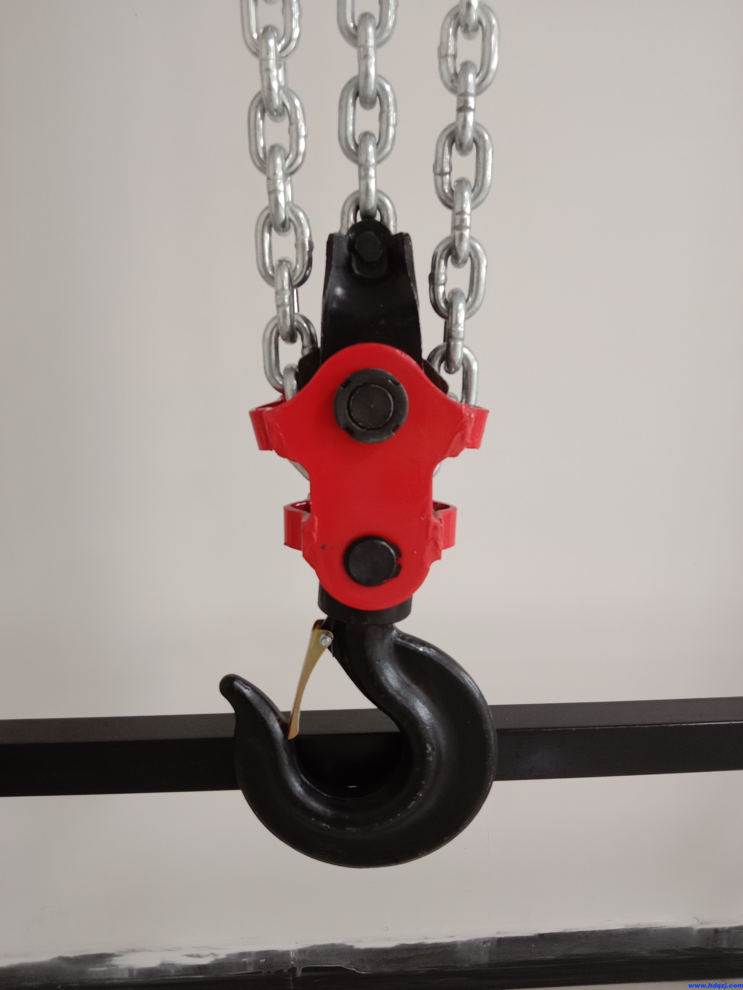 6、試運行過程中隨時觀察有無卡鏈;收、放鏈時不允許超越極限位置;不允許起重鏈條掛在其它物體上,以免產(chǎn)生過載。