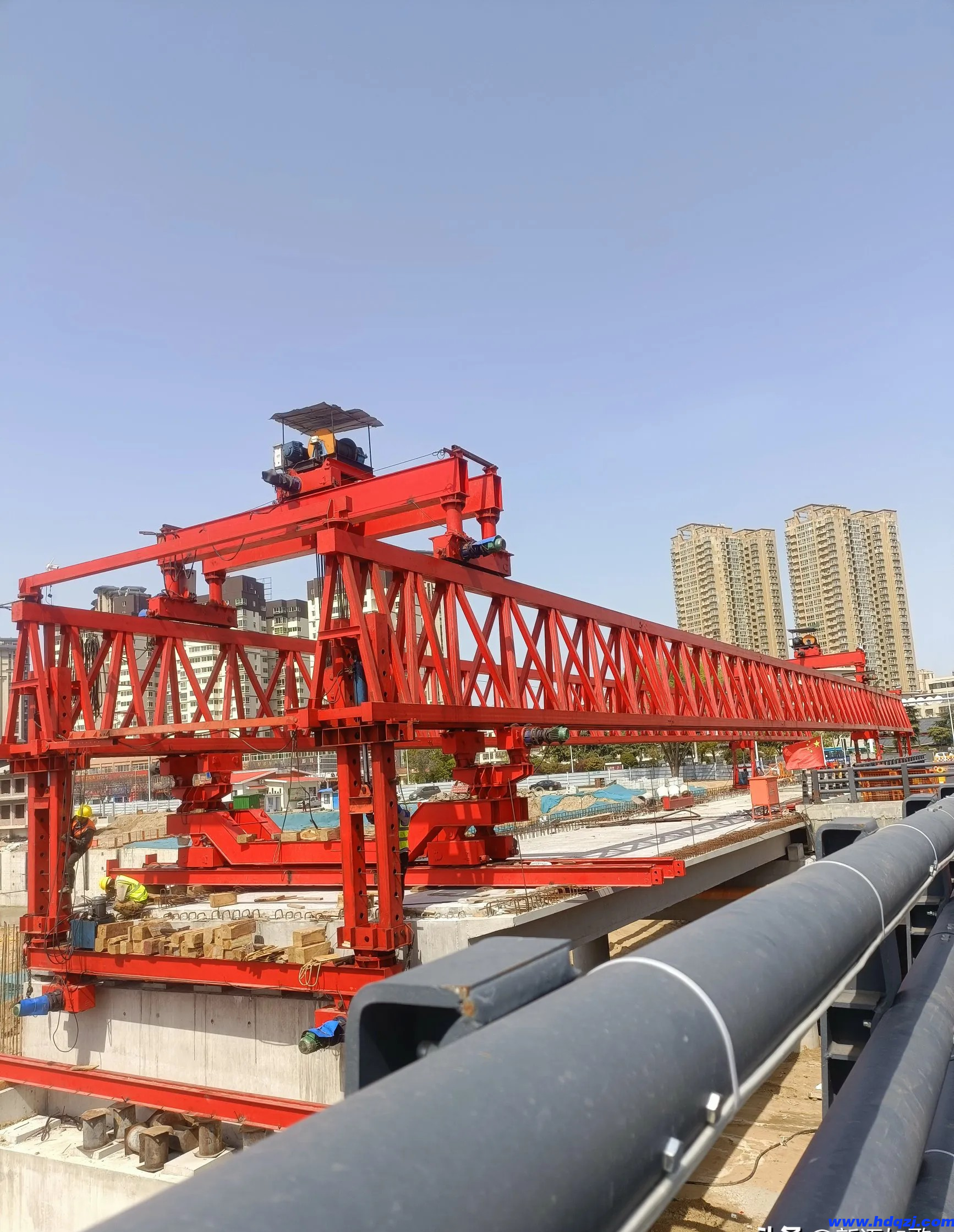 5. 鐵路架橋機梁架設完畢后,應鋪設軌道,并將鐵路橋架架設機推*橋頭進行拆裝。機組對需要標記的液壓管件、油缸等部件進行標記,便于拆卸和下次裝配。
