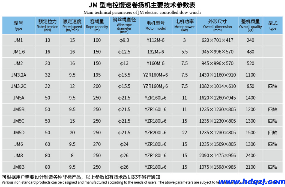 JM系列為齒輪減速機(jī)傳動卷揚(yáng)機(jī)。主要用于卷揚(yáng)、拉卸、拖拽重物。如各種大中型砼、鋼結(jié)構(gòu)及機(jī)械設(shè)備的安裝和拆卸。