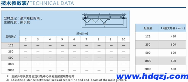起重量可達2000kg,多種軌道型號和跨度