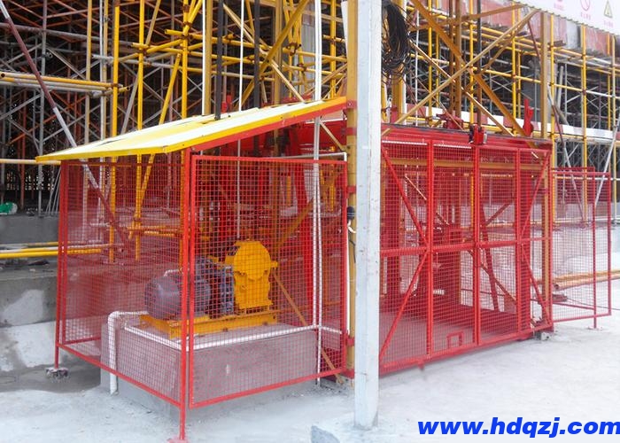 ssd100/100物料提升機(雙籠貨梯)基本安裝高度24米,理論z大安裝高度80米。
